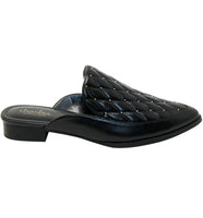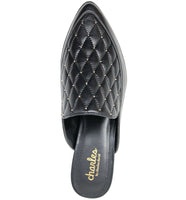 Luxurious diamond quilting textures the upper of a timelessly elegant mule detailed with a stretchy inset for ultimate comfort