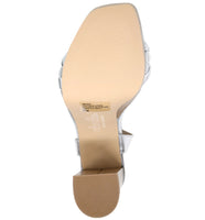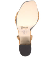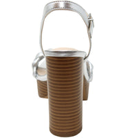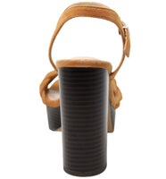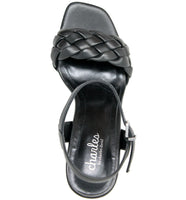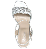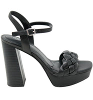 A sculpted platform heel elevates a stacked sandal with bold braided straps for glam to finish any look