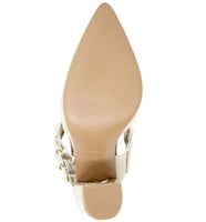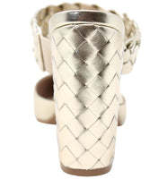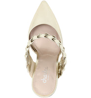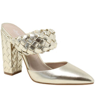 Step out in these sophisticated block heel mules detailed with a braided heel and top strap!