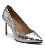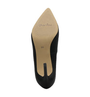 A pointed toe pump that's not so basic, extra curve dips down the side to show off a little more
