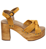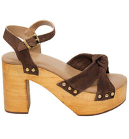 A modernized take on a classic clog, this chunky woodgrain platforms boasts suede straps and statement studs.
