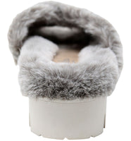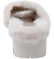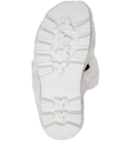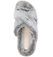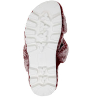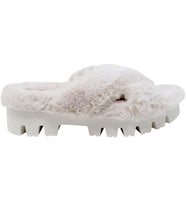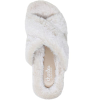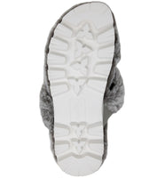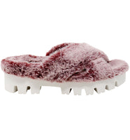 For cozy warmth without hiding your pedicure, this slide sandal is topped by crisscross straps and covered in plush faux fur.