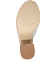 Both bold and simple, this slide sandal makes an impact with a curved block heel that achieves the perfect balance between streamlined and chunky.