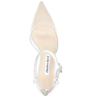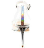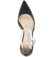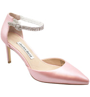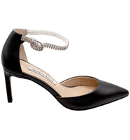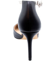 Dazzle everyone with this elegant day to night pump. Chain mail ankle strap sits on top of a very wearable stiletto!