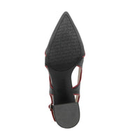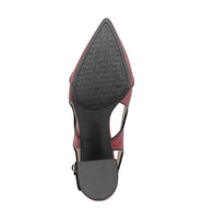 Set on a block heel, this pointy-toe slingback pump is fashioned with cutout details that could easily take you from day to night