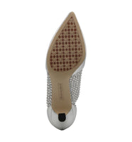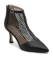 Enjoy this bootie with its crystal mesh shine and a dainty buckle on the side
