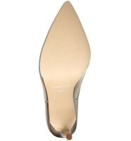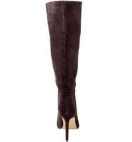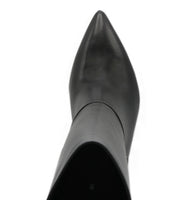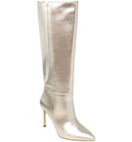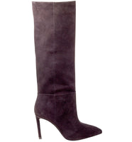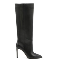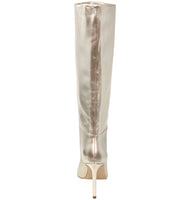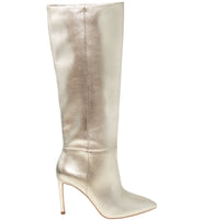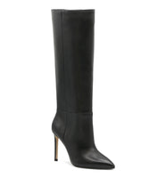 Knee length boot spells c-l-a-s-s with a pointed toe and slimmed down heel