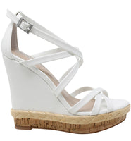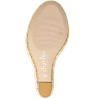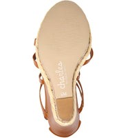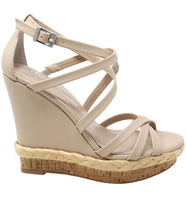 A sky-high jute-wrapped wedge elevates the summery status of a strappy sandal that lends a chic, modern look to your ensemble.