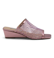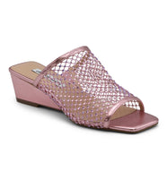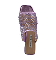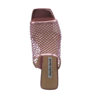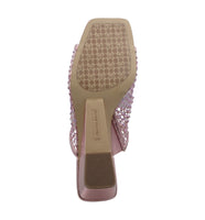 • rhinestone mesh and microsuede (black) manmade (light amethyst, pink, rose gold), manmade materials